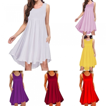Solid color style,finished with sleeveless and round neck design,this casual and relaxed dress is perfect fit for