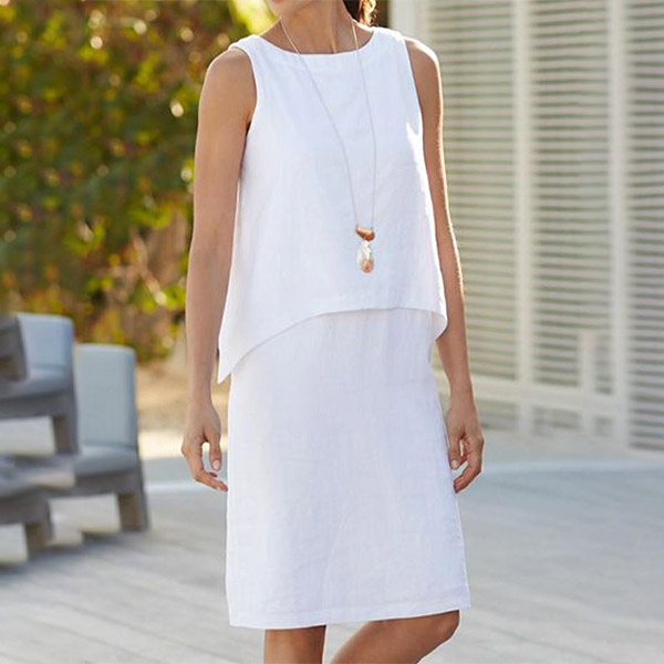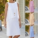 Mock two-piece style design adds its charm. Solid color style,with sleeveless and round neck design,