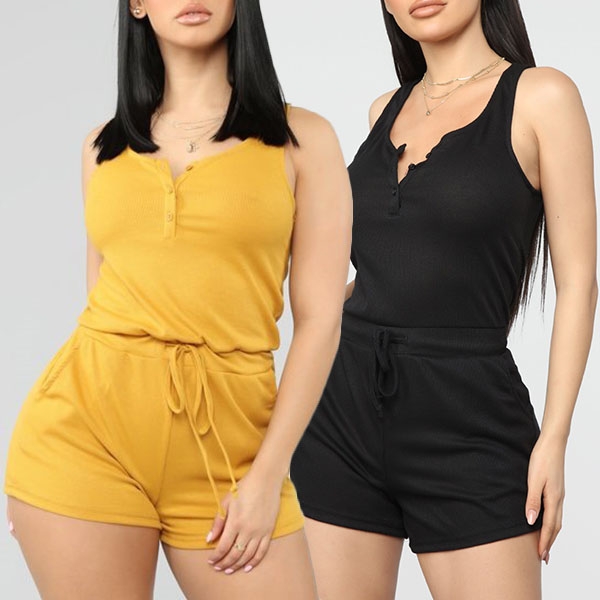 In the hot weather,you need such a romper to update your style.It comes with solid color style,