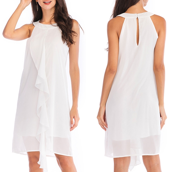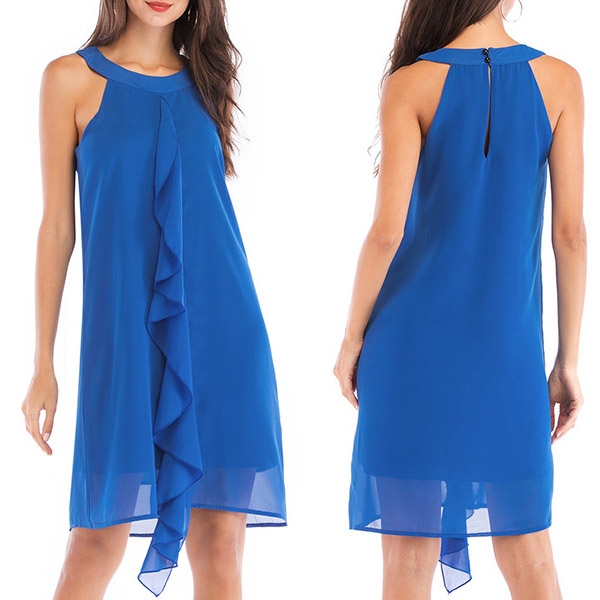 with sleeveless and round neck design,the ruffle design at front side make this piece look so attractive.