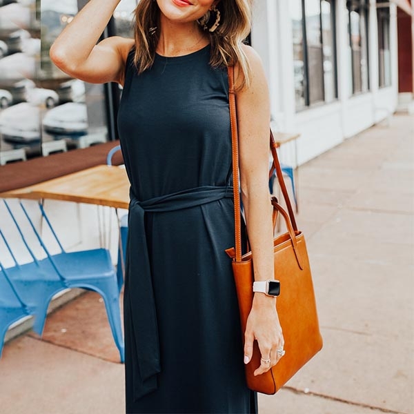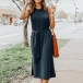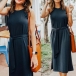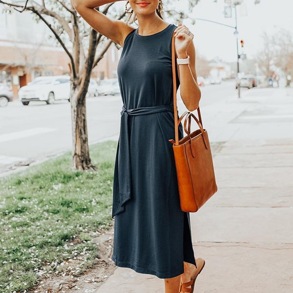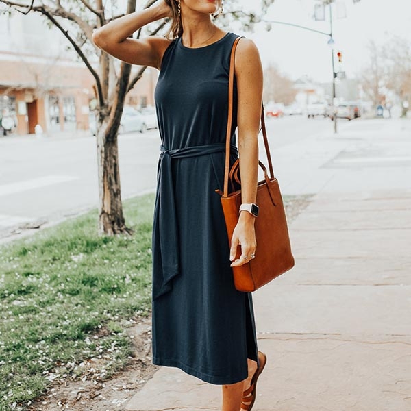 Solid color tone design makes it look simple,stylish yet generous. Finished with sleeveless,