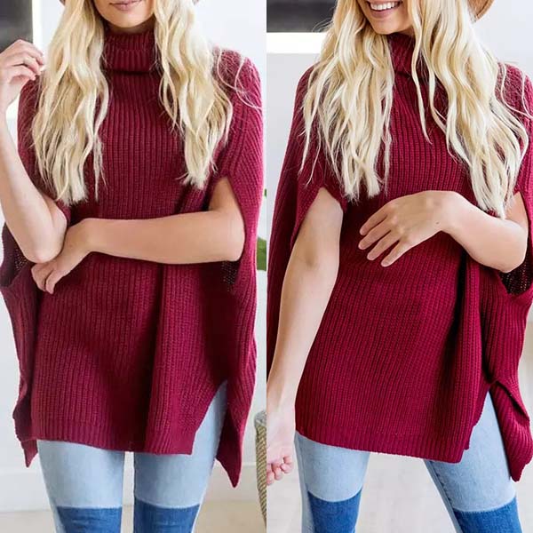Fashion Solid Color Sleeveless Turtleneck Loose Sweater
