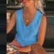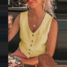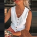day in this top. It comes with a solid color,finished with sleeveless,v-neck and front-button