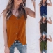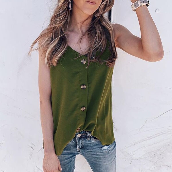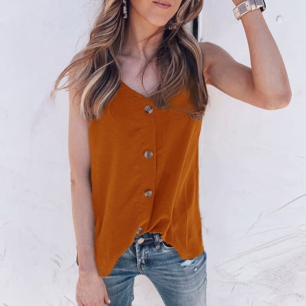 Fashion Solid Color Sleeveless V-neck Front-button Top