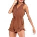Fashion Solid Color Sleeveless V-neck High Waist Romper