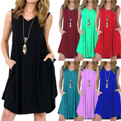 Kommer med en enfärgad, enkel men ändå snygg. Avslutad med ärmlöst, v-ringad, mjukt tyg
