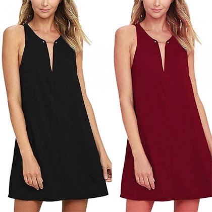 Enrich your wardrobe with this simple yet stylish dress. It boasts a solid color,with sleeveless,v-neck