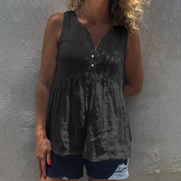 Boasts a solid color,finished with sleeveless,v-neck and a loose silhouette design,