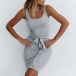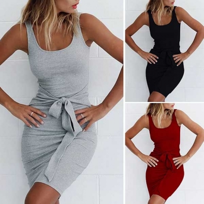 Du kan enkelt visa upp din perfekta kurva i denna tankklänning tack vare den figurnära siluetten och snörningsdesignen. Den kommer i en enfärgad, enkel och generös men ändå stilfull stil. Du kan klä upp den med sexiga klackar eller klä ner den med bekväma platta skor. Oavsett kan den ge dig en ansträngningslös och trendig look.