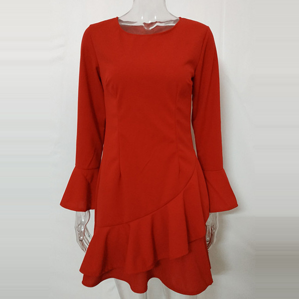 The trumpet sleeve and ruffle hem design can give you a sweet and charming look. Form your daytime