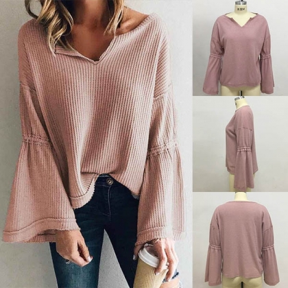 It is a good way to upgrade your daily style with this t-shirt. Comes with a solid color,the trumpet sleeve and