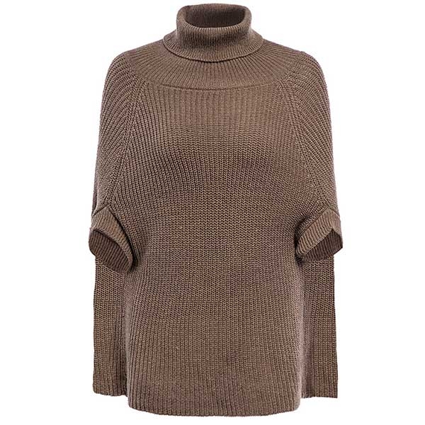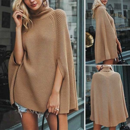 with turtleneck and a loose silhouette,cozy yet stylish. The cloak-style design is the most