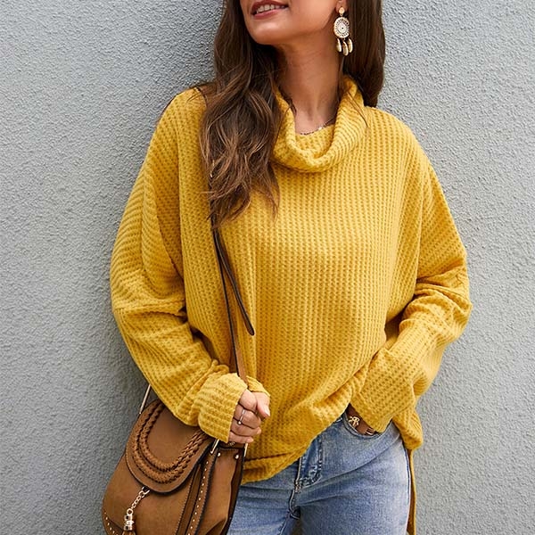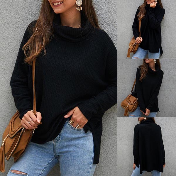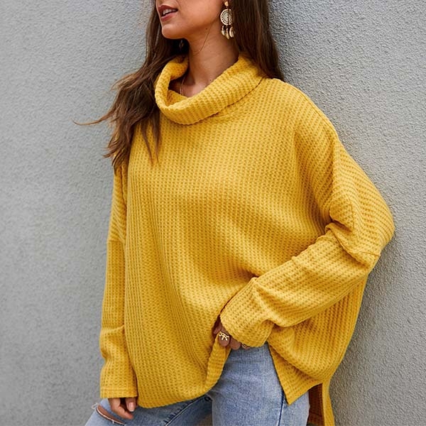 the unique sleeve and turtleneck design will make this piece look more attractive. You can add a sweater necklace to achieve for