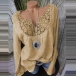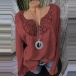 and worsted fabric in a loose-fit silhouette, feature lace spliced design with slightly V-neckline for a feminine