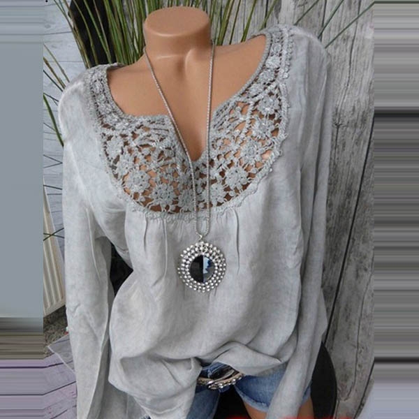 Exude confidence when you express your chic side in this lace spliced long sleeve top! Cut from a smooth