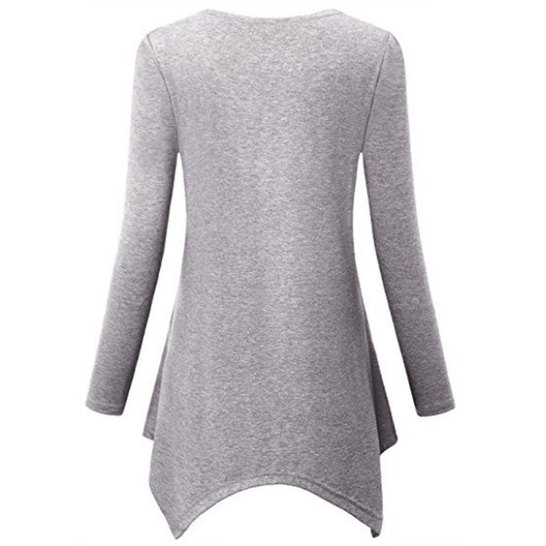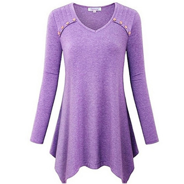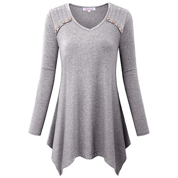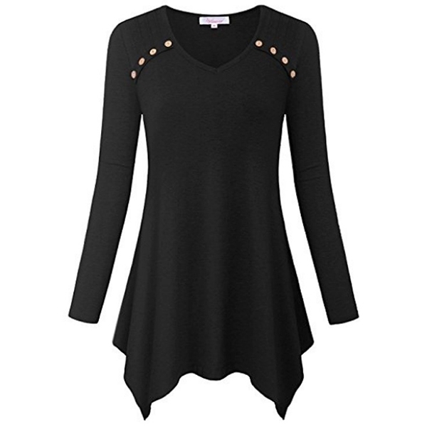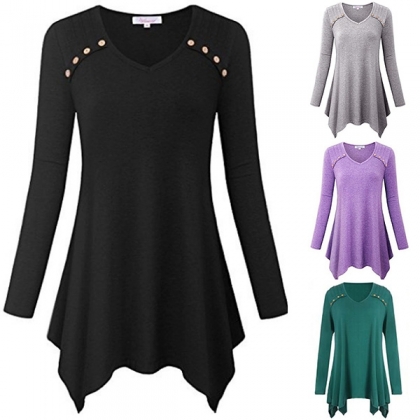 with deep v-neck,long sleeve and irregular hemline. Buttons on the two sides of neck that can set off your fair skin
