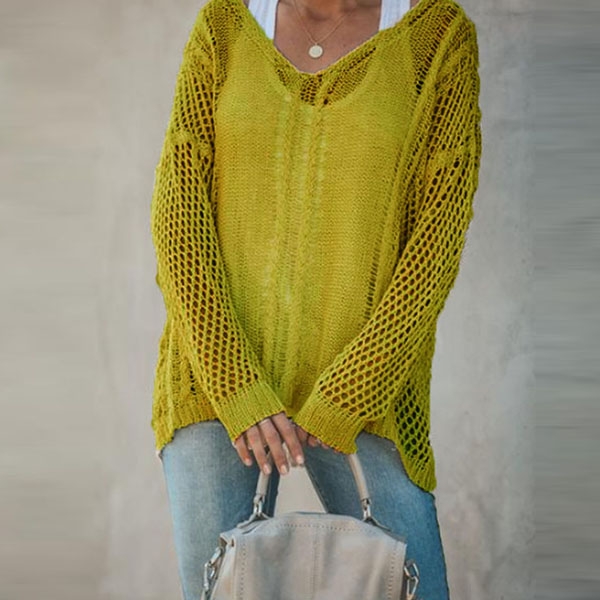 Fashion Solid Color V-neck Long Sleeve Hollow Out Smock