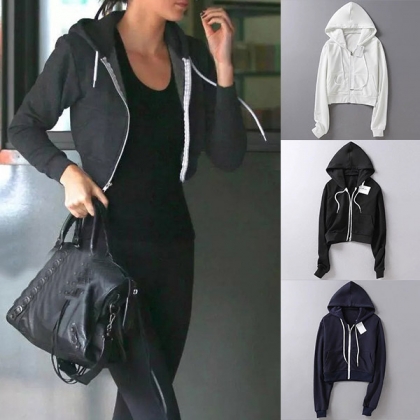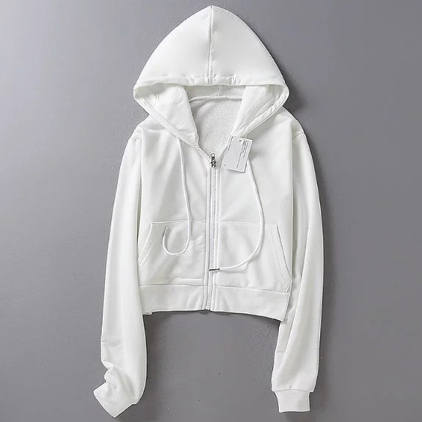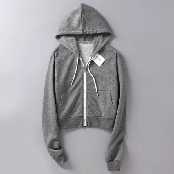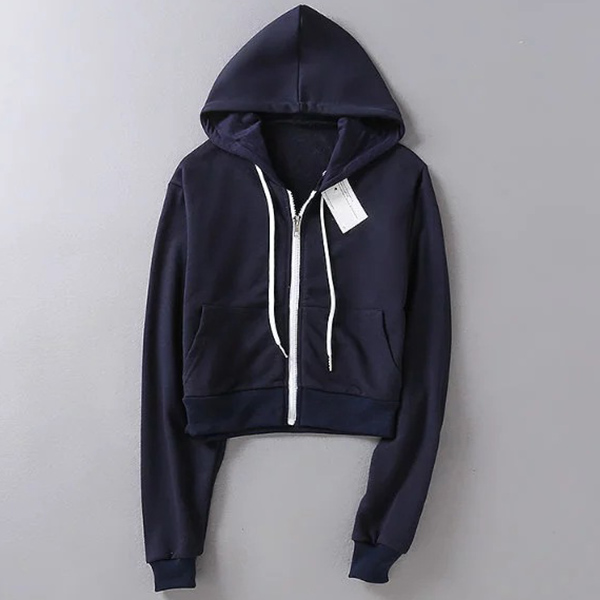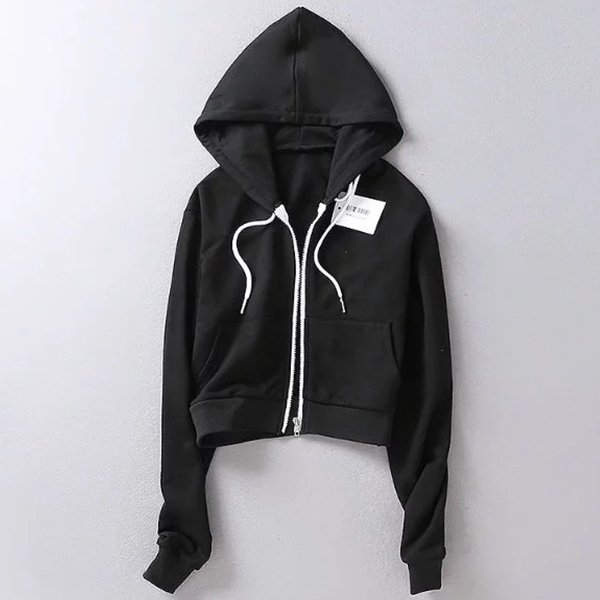 This zipper-front cropped hoodie complements a go-to lifestyle for women who want current flattering fashion.