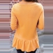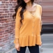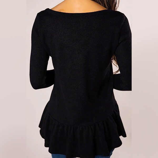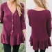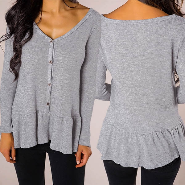 Finished with solid color,long sleeve,v-neck and ruffle hem design,this t-shirt can showcase
