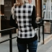 feature a fitted silhouetted with allover plaid print, zipper front design with button closure, high neckline,