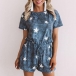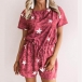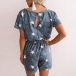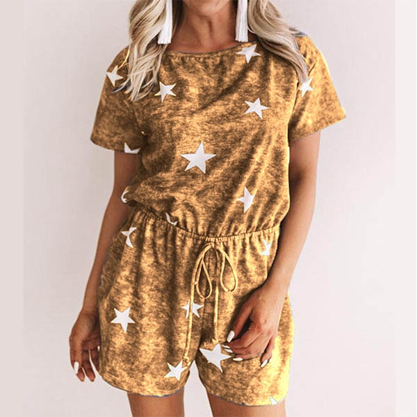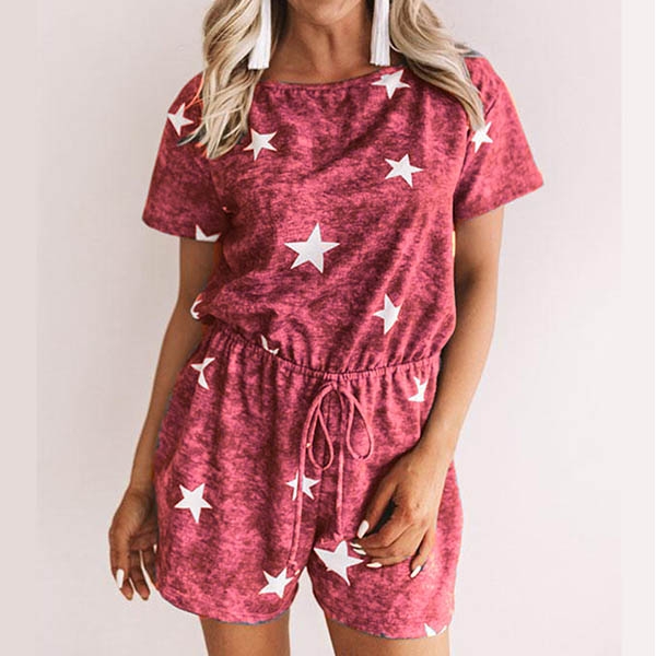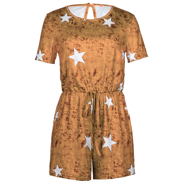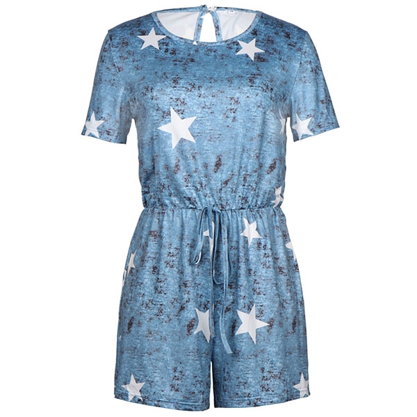 Fashion Star Printed Short Sleeve Round Neck Drawstring Waist Romper