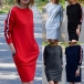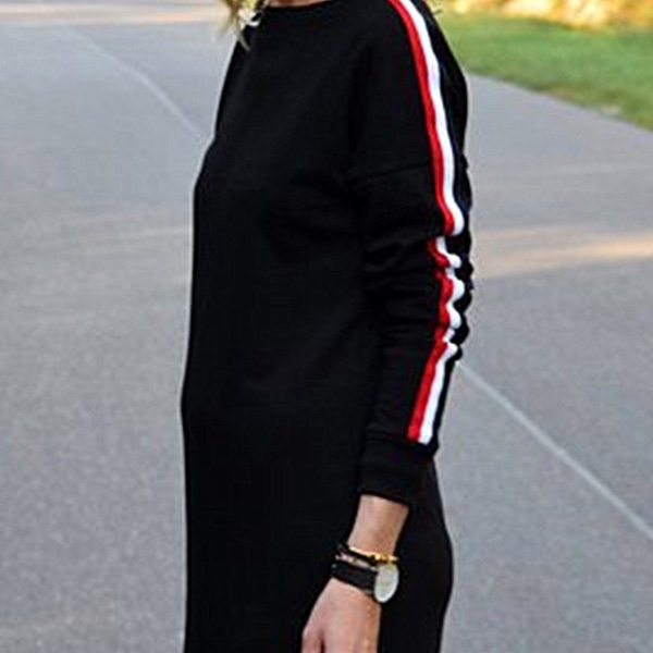 It comes with the stripe spliced and long sleeve design,and the fit silhouette make this