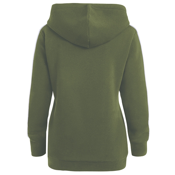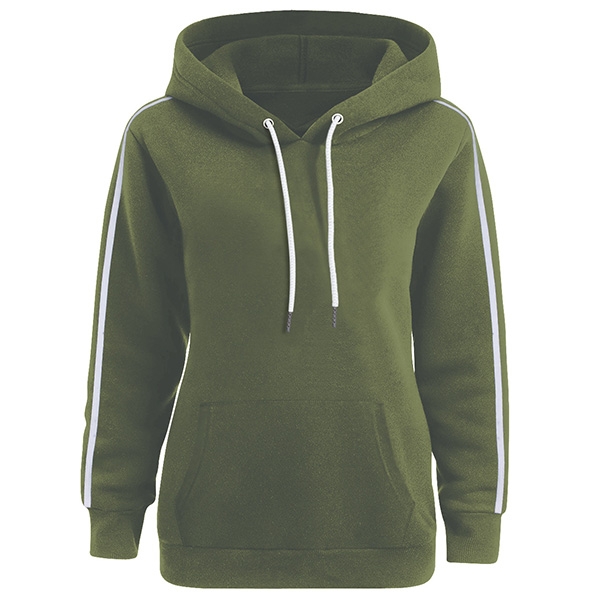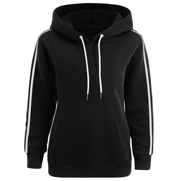 Finished with long sleeve,hooded silhouette and front kangaroo pocket design,the striped spliced design