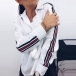 striped spliced design at the sleeve part makes this piece look more attractive. You can team