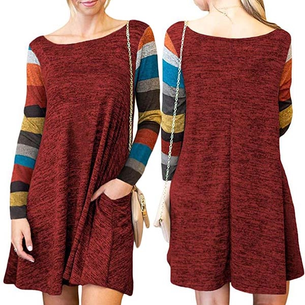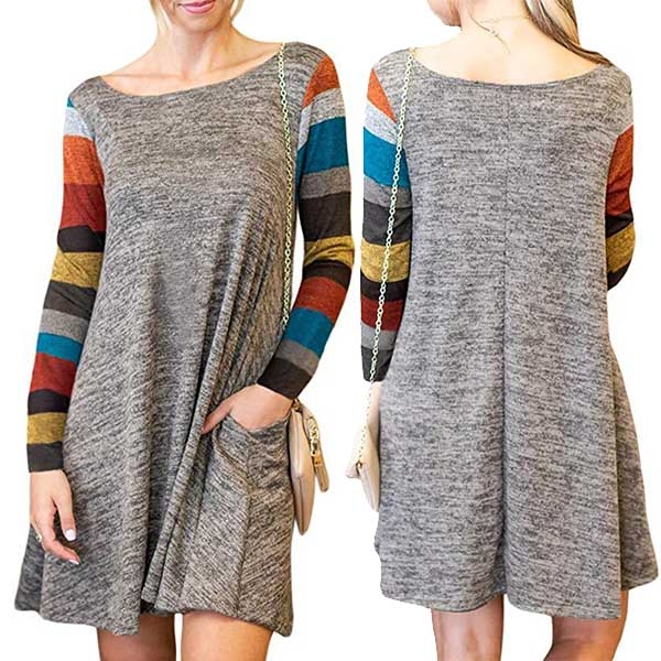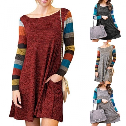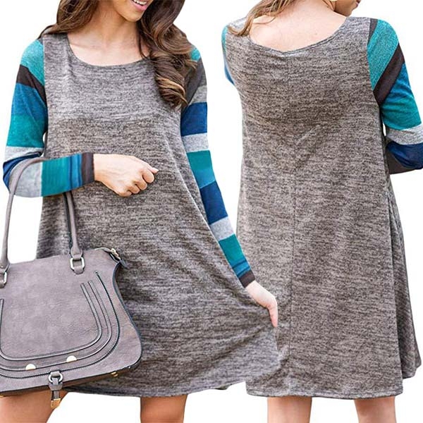 loose silhouette,this dress can give you a comfortable day. And the striped spliced long sleeve