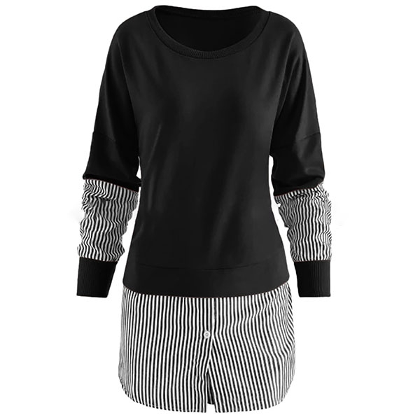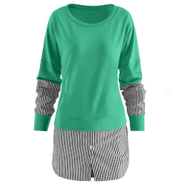 round neck design,the striped spliced design can better enhance its charm. Matching with your leggings