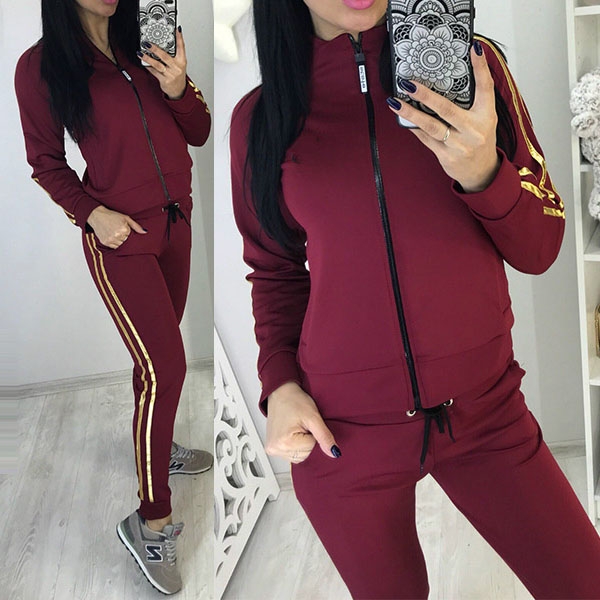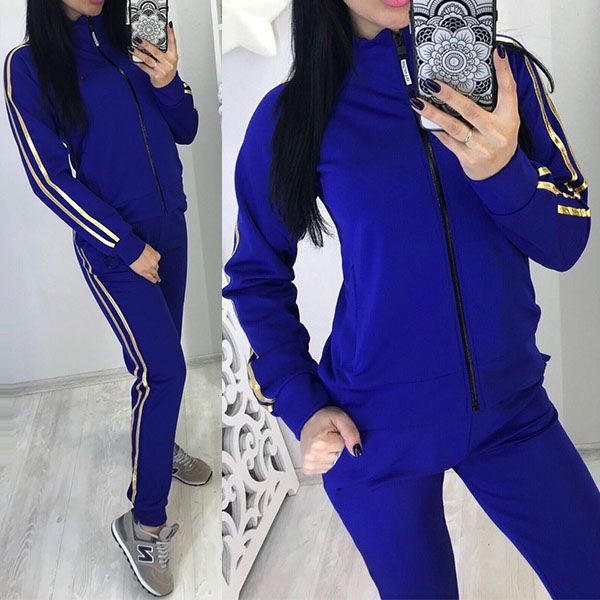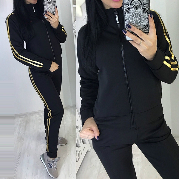 long sleeve stand collar sweatshirt coat and a sports pants,the side striped spliced design will