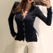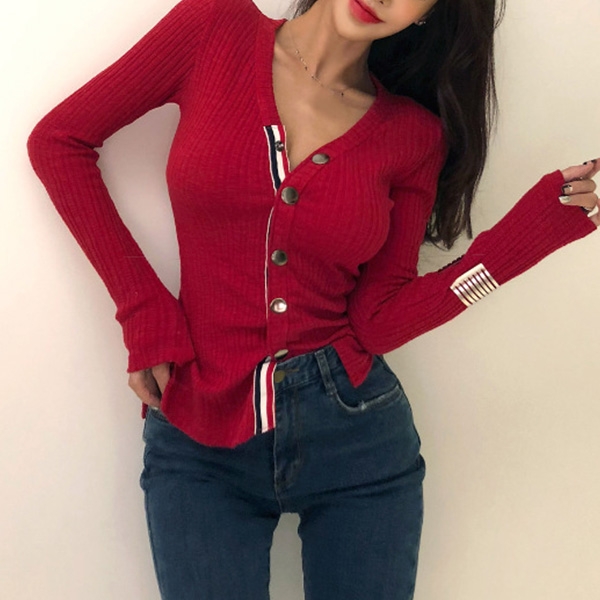 The v-neck,slit hem,front buttons and striped spliced details are the design highlights. You can enjoy the