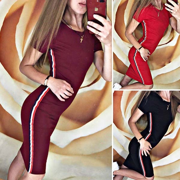 round neck and a fit silhouette design,this dress can showcase your slender figure. Moreover,the striped