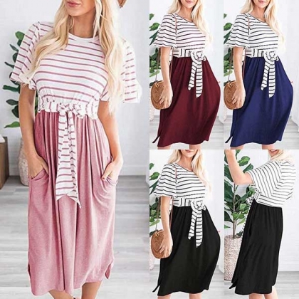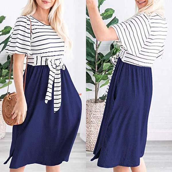 You can easily boost your fashion level with the help of this dress. It is outfitted with short sleeve,
