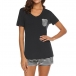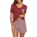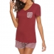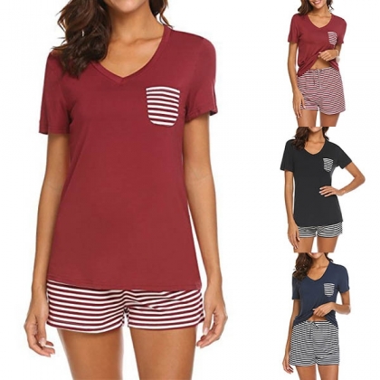 Fashion Striped Spliced Short Sleeve T-shirt + Shorts Nightwear Set