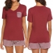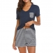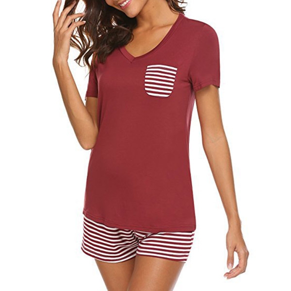 and breathable fabric. Including a short sleeve v-neck and a shorts,its striped spliced design enriches