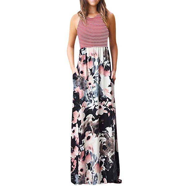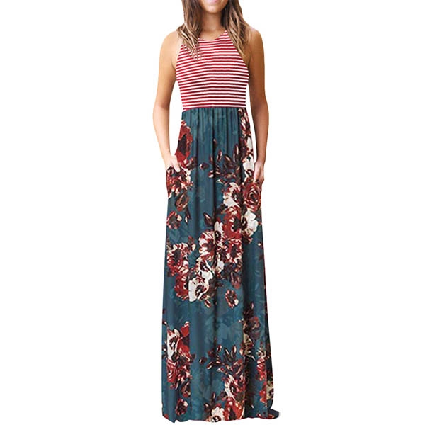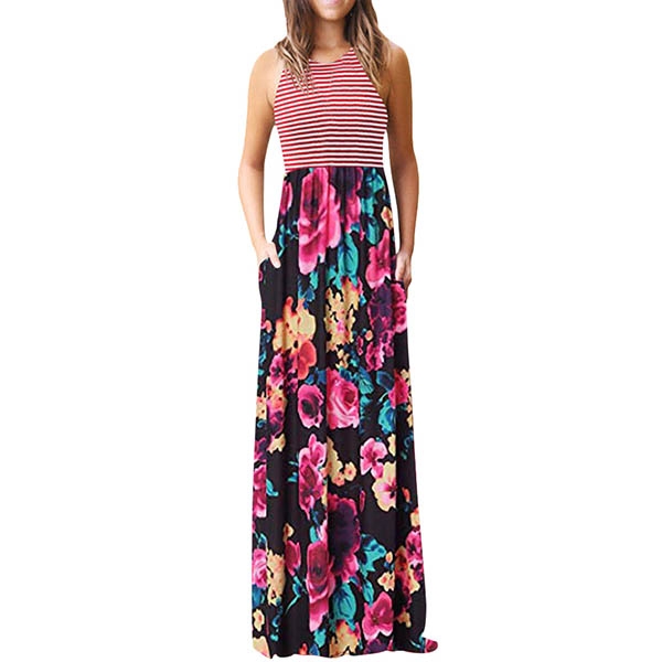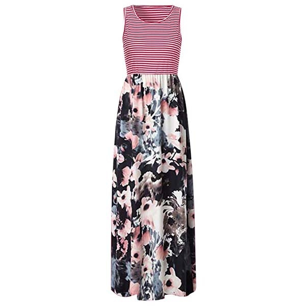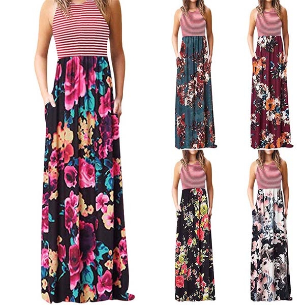 vibrant floral print details can give you a more eye-catching look. The high waist and maxi length