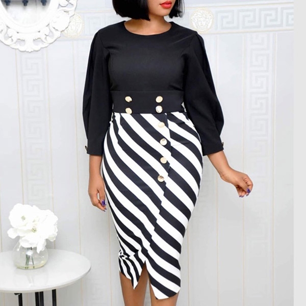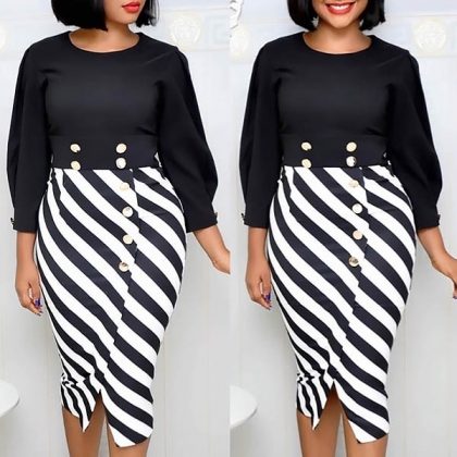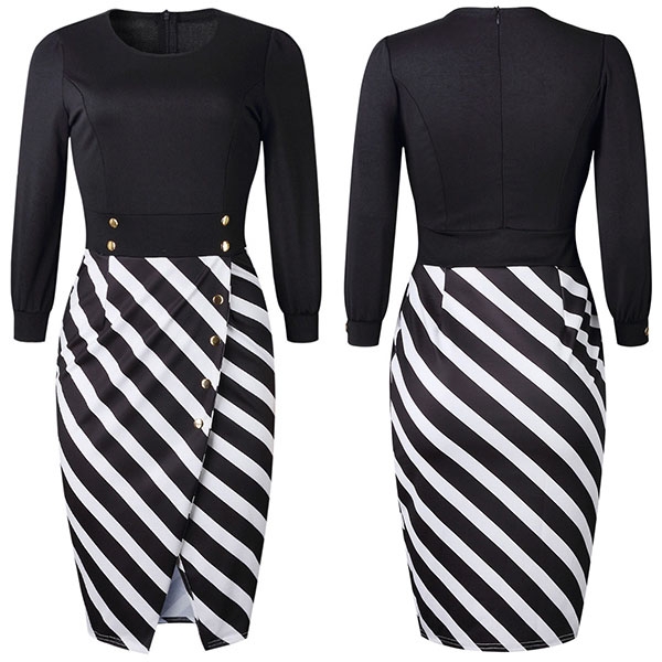 dinner date. The high waist and fit silhouette design can showcase your slender figure,while the striped