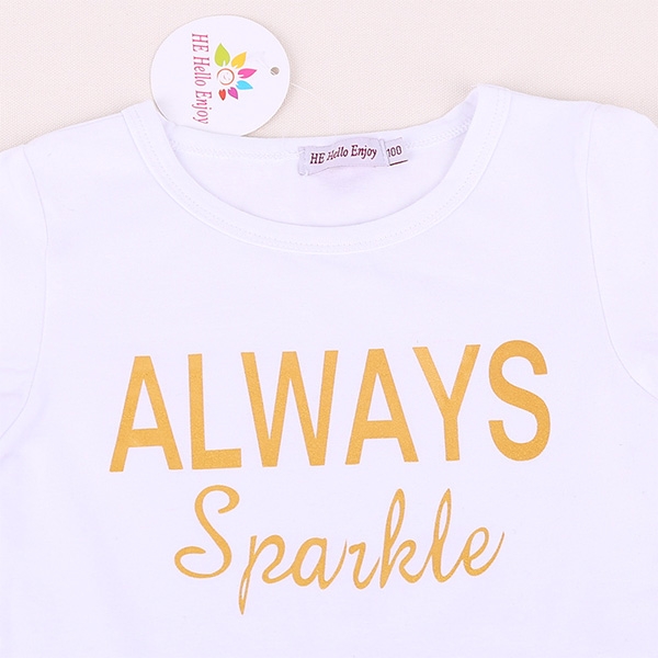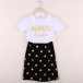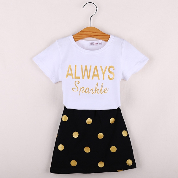 attention. It consists of a letters printed t-shirt and a dots printed skirt,this two-piece set can make you