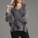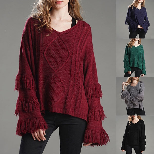 Your would be attracted by this chic and unique sweater. It comes with a solid color,the v-neck design