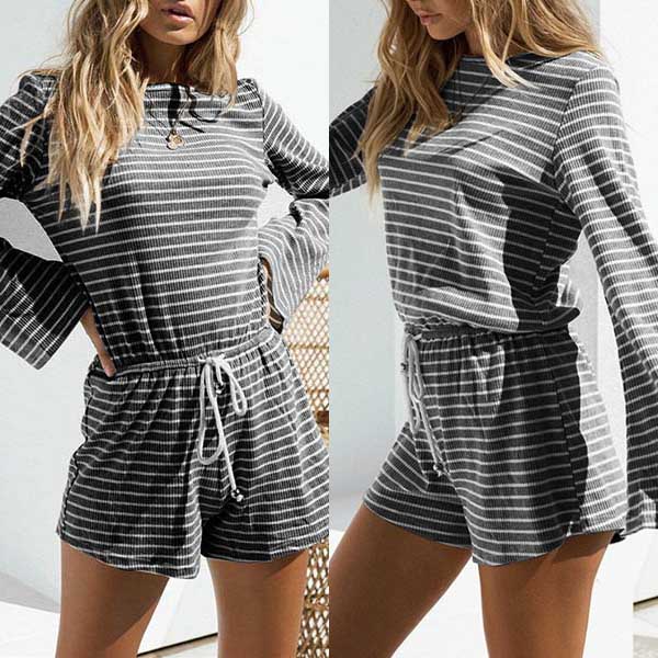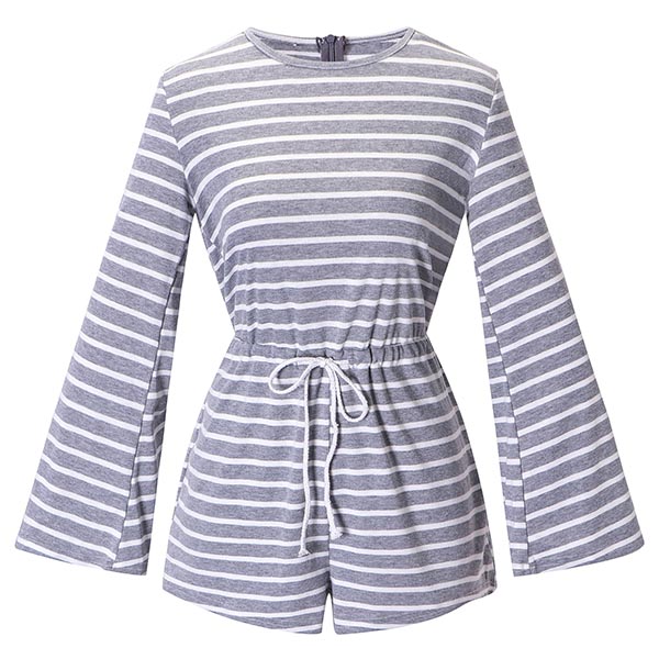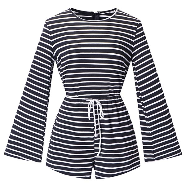 Fashionable style does not require great skill,this romper can offer you that. The striped element and trumpet