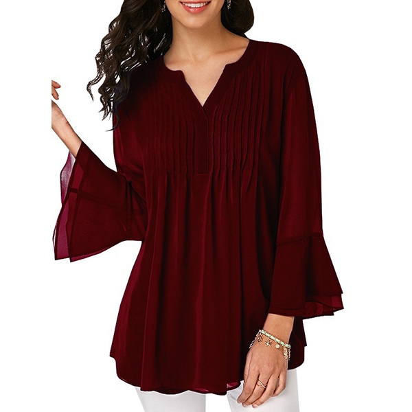 a comfortable day,while the trumpet sleeve and v-neck design will lend you a dash of sexy and
