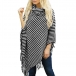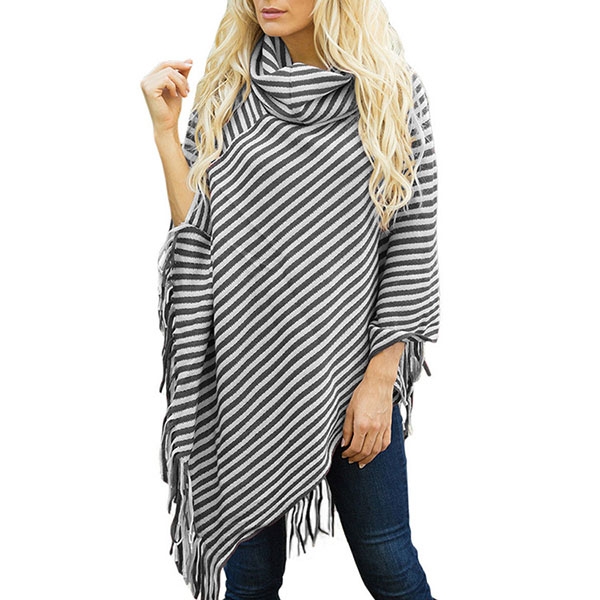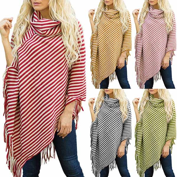 It is designed with striped element,the turtleneck and irregular tassel hem design make this piece look