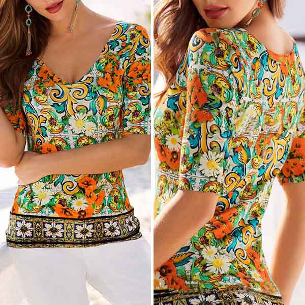 Sweetie, the beautiful shirt is extremely fit for you, don't you want to try it? It designs with deep v-neck,