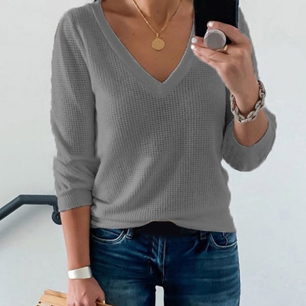 a solid color,with long sleeve and v-neck design,simple yet stylish. No matter matching with a
