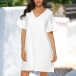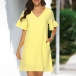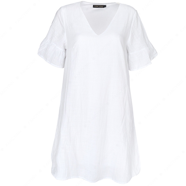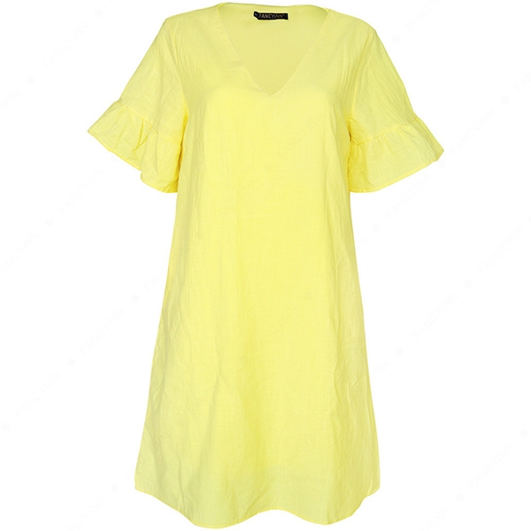 Wanna find a simple dress? Here it is.Solid color style,the v-neck and lotus sleeve design can