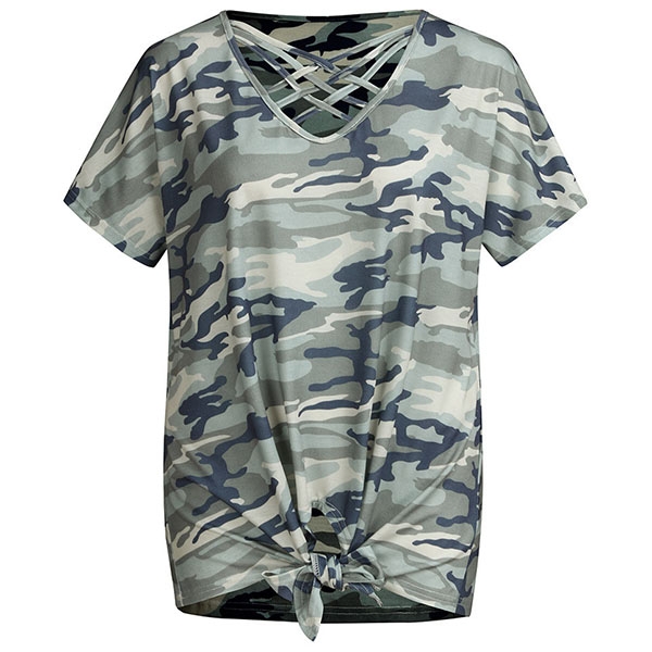 The camouflage printed design makes it look so attractive,while the knotted hem and lace-up v-neck design