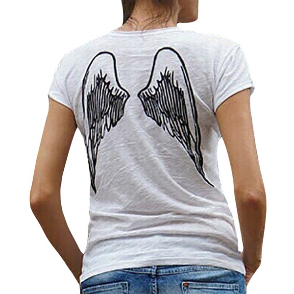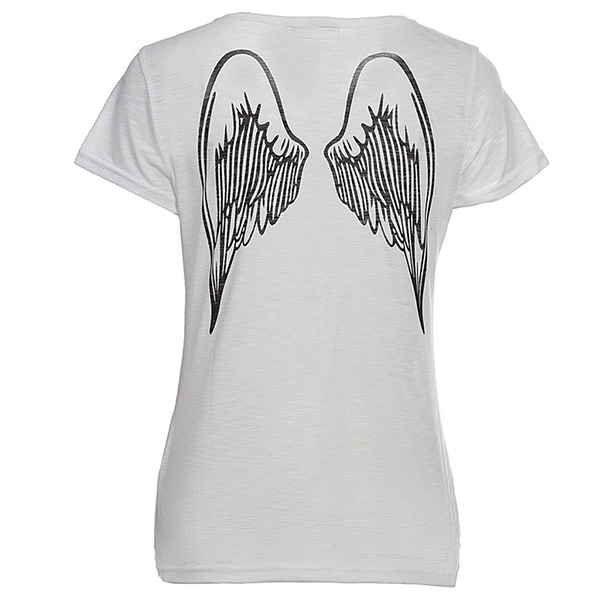 The wings printed pattern design at the back side adds some charms. Finished with short sleeve and