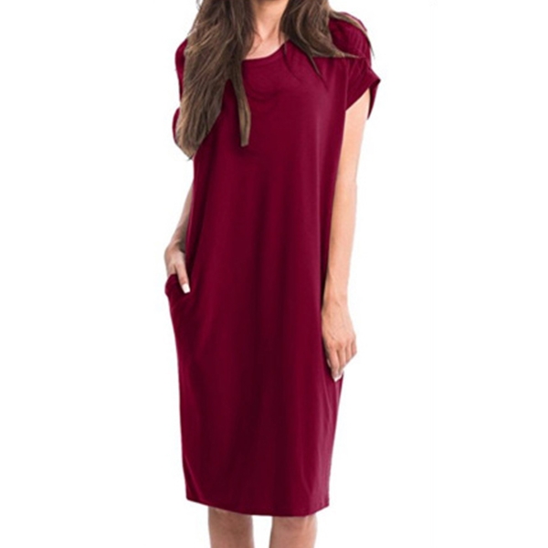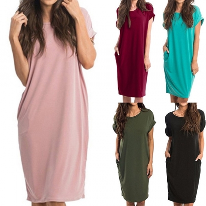 with solid color,short sleeve,round neck and a loose silhouette,simple in design but filled with chic,