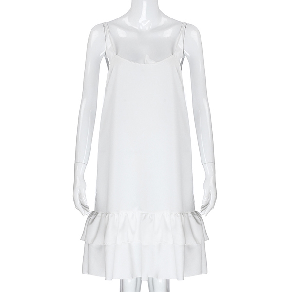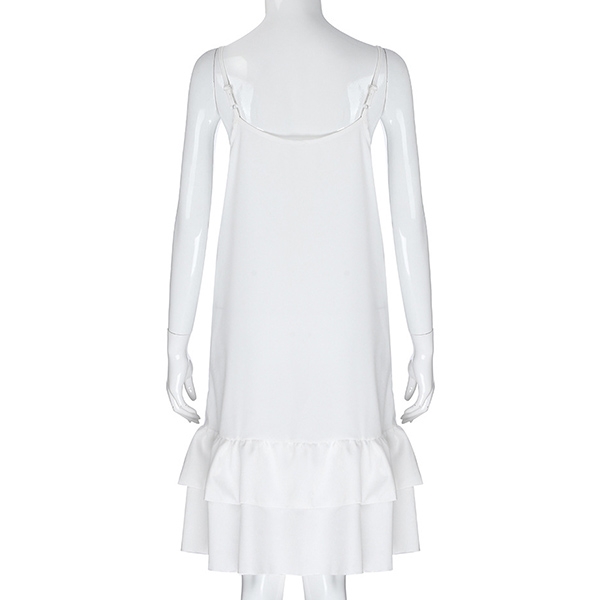 Fresh Style Backless Ruffle Hem Solid Color Sling Dress